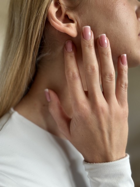 Na czym polega ta stylizacja? To cieniowanie, w którym biała końcówka płynnie przechodzi w różową nasadę. Nie ma tu ostrej granicy, co sprawia, że paznokieć wygląda bardzo naturalnie.
