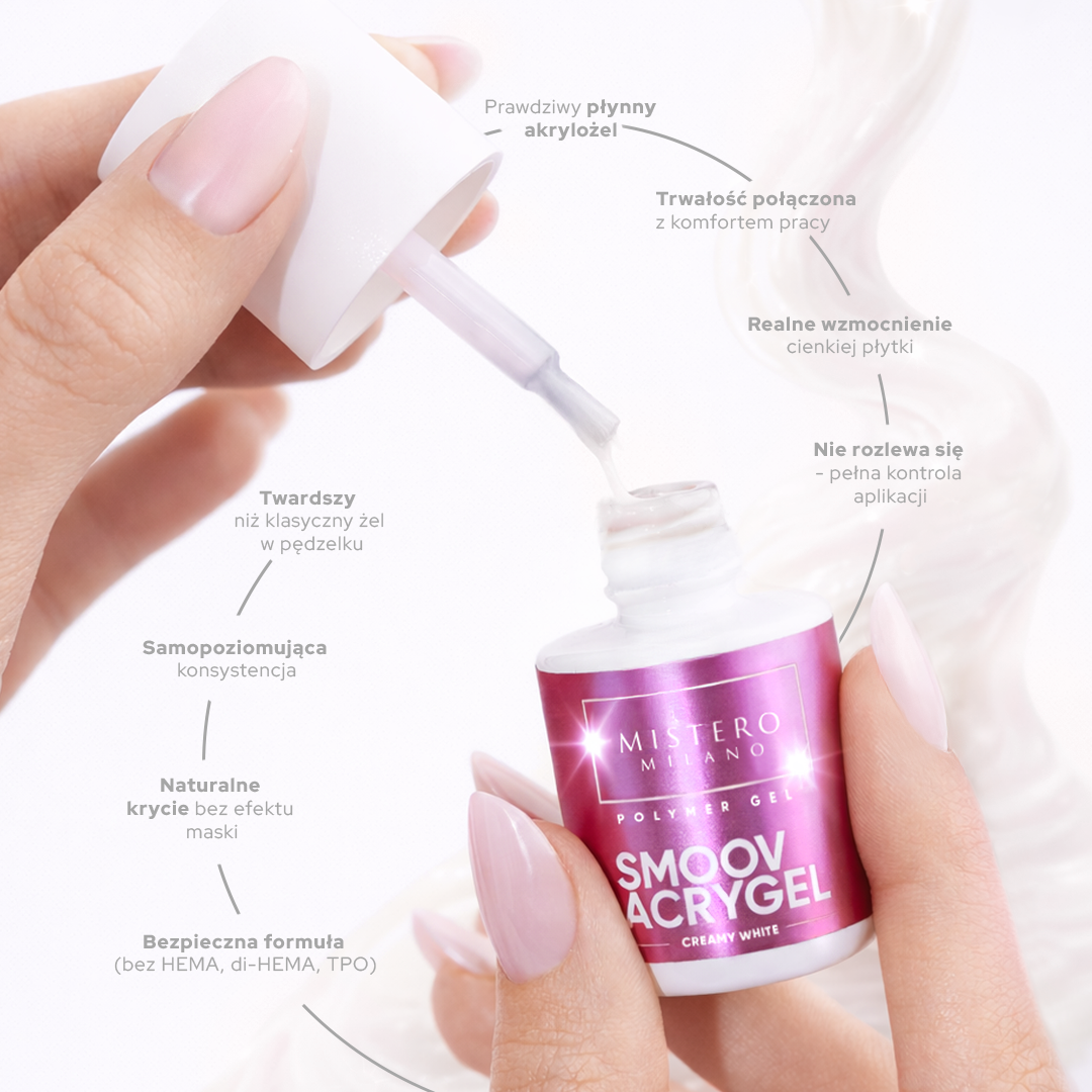 Sprawdź, jakie zalety posiada akrylożel SMOOV od Mistero Milano i przekonaj się, że praca z nim będzie soo smooth.